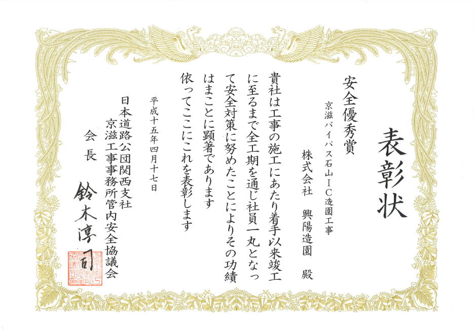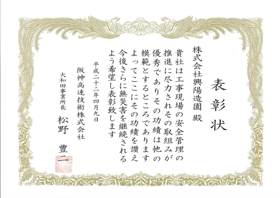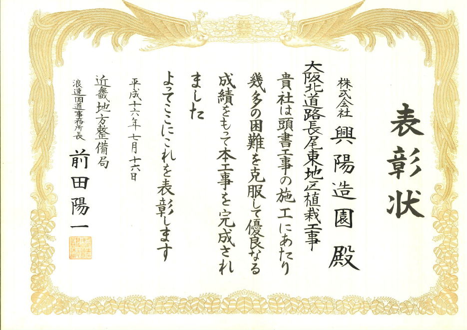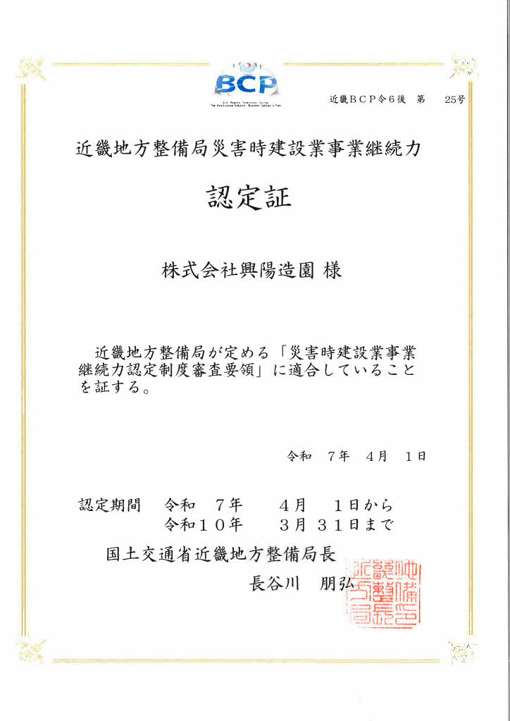 | 建設業許可 建設大臣(般-4)第14705号造園・土木工事業 |