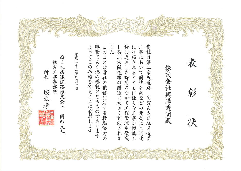 | 建設業許可 大阪府知事(般-52)第46473号造園工事業 |